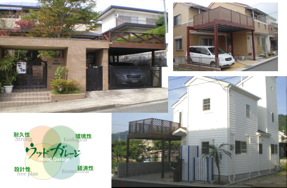 上参考写真 床:ウリン材 手摺:クロスタイプ 右参考写真 床:ウリン 手摺:ラチスタイプ(木樹脂)
