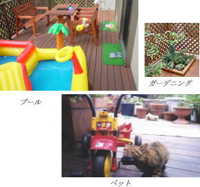 ウッドデッキではガーデニング、水遊び、ペットのスペース、バーベキュー、その他色々な生活シーンに合わせて設計が可能ですウッドデッキ仕様のカーポート&バルコニー