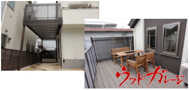 寸法L:4300 D:5100 H:2200/3300mm(傾斜地) 床:ウリン材デッキ 色:ブラウン 手すり:ウリン材(竪格子タイプ) 色:ブラウン ※バルコニー テラスから出入り可能なオープンテラス風ガレージ ![]() ![]() |