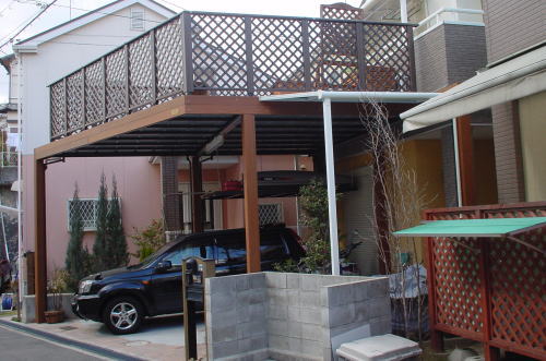 ウッドデッキ仕様のカーポート「ウッドガレージ」の株式会社サンエクス