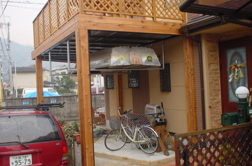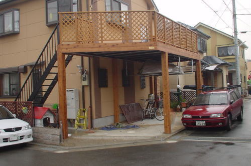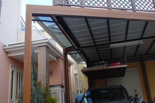 ウッドデッキ仕様のカーポート「ウッドガレージ」の株式会社サンエクス