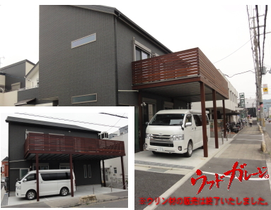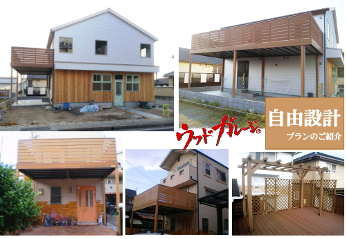 トップ > 自由設計プランのご紹介 > ポイント2手すりウッドデッキ仕様のカーポート&バルコニー「ウッドガレージ」は、あなたの個性が“カタチ”になります。中でも手すりは好みが分かれるところ。材質は、自由にお選びいただけます