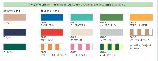 出幅1250/その他1565/1901/キャンパスカラーは規格色3色、特注色16色