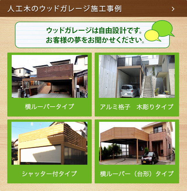 ウッド ガレージは 駐車場だけでなくウッド デッキとしても利用できる贅沢なガレージです。ウッドデッキ&ガレージ&バルコニータイプ どんな敷地でも可能な自由設計オーダーメイドデッキ!